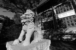 初秋的下午,陽光懶散地灑落在北大西門辦公樓前。兩只石麒麟靜靜蹲坐著,仿佛在曬太陽,又像在冥想著遙遠(yuǎn)的故事。“看樣子是文物吧!币幻猩T著車,一條腿撐在石麒麟身上。