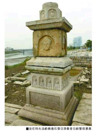 泉州曾是海上絲綢之路的起點(diǎn),位于泉州灣晉江出?谔幍南y埔自然擔(dān)當(dāng)了極其重要的角色。蟳埔村外晉江邊上的法石碼頭曾是重要的港口,來自阿拉伯和東南亞的商船均?坑诖。如今這里一片荒涼,只有孤零零佇立在江邊的那一座佛龕石像仿佛向人們訴說著碼頭昔日的輝煌——佛龕上既刻著佛像又刻著西域神像,各種文化曾在這里交融并和諧地共存著。