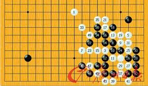 比賽過程:我國(guó)手下至第33手,其實(shí)還是在布局階段,使出“鎮(zhèn)神頭”的絕招,日本王子俯首稱臣。