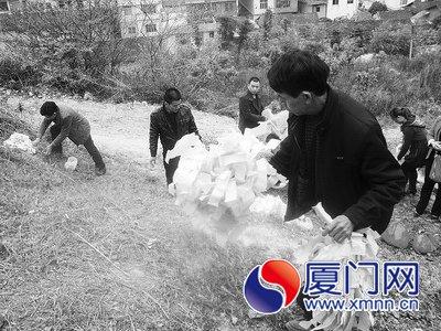 農歷三月初三那天,他們掃墓的方式和清明掃墓是一樣的:先是由后人“掛紙”(在墳墓上掛紙帛,后改為壓紙帛)作為上墳的標志。掛紙之前,先鏟除墓上叢生的雜草,再將紙帛兩三張一疊折成波紋狀,再用小石塊壓在墳上。如果說墳墓是祖先死后居住的場所,那么壓紙就象征著子孫們一年一度為祖先的居所增添新瓦。掛完紙,再準備簡單的供品祭墓,然后燒紙錢,兒孫們在祖先墓前跪拜行禮,這樣既盡了子孫孝道,也祈求祖先護佑子孫平安如意。