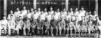 一個月后,我所在的經濟系四年級同學即將畢業(yè)。大家懷著對新上任的馬校長和全系教師依依不舍的惜別之情,提出邀請馬校長和全系教師同我們一起合影。7月1日,在孑民堂前,中國照相館的高級技師為我們精心地拍攝了一張畢業(yè)紀念照。在北大一百周年校慶舉辦的校史展覽會上和新成立的校史館里,都將這張照片放大展出,十分引人注目。