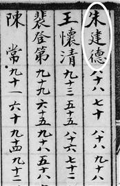 在 《四川省城高等學(xué)堂體育學(xué)堂甲乙兩班學(xué)生積分表》上,記者找到了朱德的學(xué)習(xí)成績(jī)記錄,不過(guò)成績(jī)單上使用的名字是朱建德。這份成績(jī)單共列出了朱德修身、國(guó)文、教育、心理、生理、兵學(xué)、器械等13門學(xué)科的成績(jī),其中器械課的成績(jī)最好,達(dá)到滿分一百,心理課成績(jī)也有98分。全班52人中,朱德的總成績(jī)位居第10名。