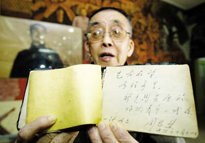 昨日,張治中將軍之子、全國(guó)港澳臺(tái)僑聯(lián)誼會(huì)會(huì)長(zhǎng)、79歲的張一純老人專程從北京趕來(lái),從衣兜里小心地掏出了一本黑色硬面抄,里面有周總理為他的題詞,這是老人最珍貴的物品。