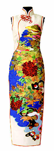 這是一個很有意思的展覽。對于今天的大眾來說,旗袍和王家衛(wèi)電影中老上海的懷舊氣氛、東方式的曖昧欲望、被約束卻又有節(jié)制地誘惑著人的身體交纏在一起,是一個符號一樣的東西。而“百年旗袍展”則比較嚴肅,它展示的這些旗袍實物,集歷史性、學術性、藝術性、觀賞性于一體,從清末到二十世紀末,跨越了整整100年的時間。展出的百款經(jīng)典旗袍按照時間順序分為五個部分:清末、20世紀初葉、20世紀20年代、20世紀三四十年代、當代。這些款式經(jīng)典、色彩豐富、紋飾紛呈的展品均由專家精心遴選而出,體現(xiàn)了各個時期旗袍最主要的特點與風格。