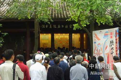 4月28日下午,新世紀(jì)以來最大規(guī)模的一次張大千作品展在四川成都杜甫草堂開展,吸引了眾多書畫愛好者前來參觀。作 者:伊西科