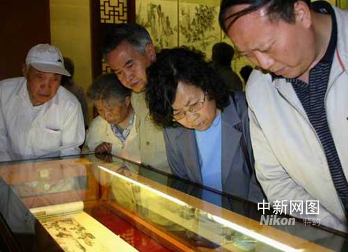 記者在現(xiàn)場看到,張大千作品剛一展出就吸引了大量書畫愛好者前來參觀!拔覐1956年開始喜歡并臨摹大千先生的作品,已經(jīng)五十多年了,今天能夠在這里欣賞到這么多大師的真跡,真的感到特別高興!痹谡褂[現(xiàn)場,一位80多歲的老婆婆駐足在作品前,高興地對記者說。