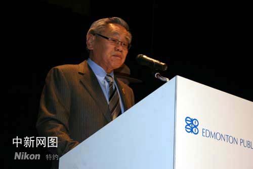 艾伯塔省省督林佐民(Norman Kwong)致辭祝賀孔子學院落戶埃德蒙頓。中新社記者呂振亞攝