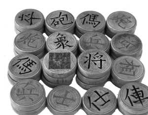 早期的象棋,一套棋具由棋、箸、局三種器具組成。棋共六子,分別為:梟、盧、雉、犢和兩枚塞。箸,相當(dāng)于骰子,在棋之前先要投箸。局,是一種方形的棋盤。比賽時(shí),“投六箸,行六棋”,斗巧斗智,相互進(jìn)攻逼迫,而置對(duì)方于死地。在這種棋制的基礎(chǔ)上,后來(lái)又出現(xiàn)一種叫“塞”的棋戲,只行棋不投箸,擺脫了早期象棋中僥幸取勝的成分。