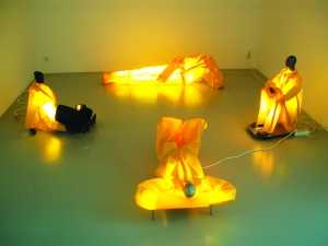 參展“融超經(jīng)驗(yàn)2008”的23位藝術(shù)家中,既有像庫(kù)奈利斯這樣享譽(yù)國(guó)際的名藝術(shù)家,也有初出茅廬的青年人。在開(kāi)幕式上,記者看到了如今旅居羅馬的庫(kù)奈利斯的三個(gè)“無(wú)題”裝置藝術(shù),還有喬治·拉帕斯的“發(fā)光雕塑”與盧卡斯·薩馬拉斯的《鏡中的房間》。喬治·拉帕斯介紹,他的靈感來(lái)自街上的燈箱:“當(dāng)光源的光向四處彌漫,四周的氛圍都發(fā)生了變化。”