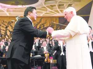 記者:作為第一位在教皇面前指揮的中國音樂家,你緊張嗎?面對教皇和那么多觀眾,你心里想的是什么?