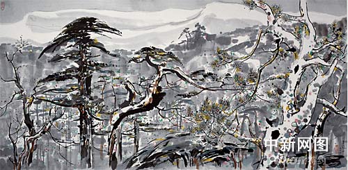 本次藝博會參展作品、著名畫家吳冠中中國畫《香山春雪》。