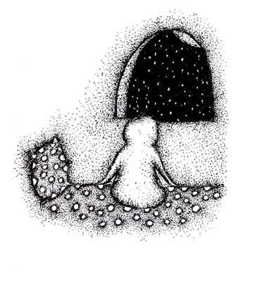 陳廣頤的黑白畫作,獨(dú)樹一幟,意境無窮,構(gòu)思奇巧,深邃深刻。最富有趣味的是她創(chuàng)造的書中小伊砣人物造型,堪稱一絕,一襲小袍子將全身包裹至嚴(yán),不設(shè)五官,但小人物神態(tài)、心態(tài)、情態(tài)和體態(tài)傳達(dá)得極其富有神韻,極其生動(dòng)鮮活,流淌著作者無盡的浪漫和憂愁的詩意,甚至每一個(gè)轉(zhuǎn)過身去的小背影都讓人心生愛憐和留下無盡回味想象。就是這個(gè)經(jīng)典而可愛的小人物形象緊緊牽動(dòng)著讀者的心,讓讀者和書中的小人物共同悲喜。雖掩藏包裹至深,但一個(gè)可愛浪漫、孤寂苦悶、追夢(mèng)奮斗的留學(xué)海外的小人物跳躍在紙上,讓人愛不釋手。