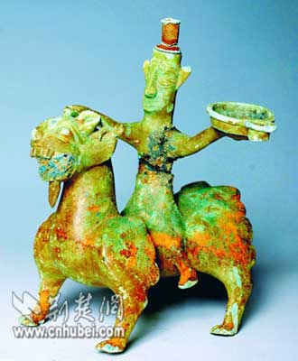 一級文物人騎麒麟形燈座
