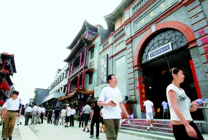 大柵欄地區(qū)東起前門大街,西至南新華街,南鄰珠市口西大街,北接前門西大街,總占地面積為1.1平方公里,是北京城區(qū)歷史延續(xù)最長的傳統(tǒng)市井商業(yè)區(qū)。目前,大柵欄商業(yè)街上仍以老字號產(chǎn)品及傳統(tǒng)商業(yè)相關(guān)服務(wù)為主要特色。重點老字號店鋪有同仁堂、張一元、內(nèi)聯(lián)升、瑞蚨祥、步瀛齋、大觀樓和狗不理、張小泉刀剪店共8家,占整條街店鋪總數(shù)的14.3%。這8家老字號企業(yè)營業(yè)面積占整條街總營業(yè)面積的27.7%,年銷售額約占整條街總營業(yè)收入的75%。