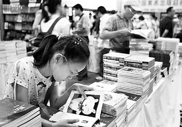 各出版社力推的作品中,娛樂明星的寫真、自傳也大幅減少。在上海文藝出版社的展臺(tái),力推的作品包括《莫言最新長篇集結(jié)系列叢書》《王立群讀<史記>之呂后》《馬瑞芳趣話紅樓夢》《孽債Ⅱ》《上海新銳作家文庫》等文學(xué)、歷史類圖書,而昨天占據(jù)該社銷售排行榜前幾位的,也都是這些圖書。
