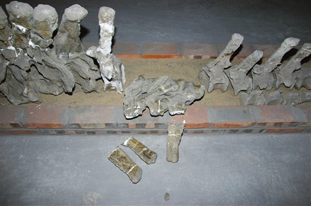 據(jù)恐龍博物館館長周遠明介紹,地震發(fā)生后,館領(lǐng)導(dǎo)紛紛用電話通知館內(nèi)值班的保衛(wèi)人員加強戒備,在保障人身安全的前提下,加強巡邏全力保證國寶化石的安全。昨日上午,館內(nèi)組織專家對館藏化石的3個倉庫進行清點,除了3號倉庫的防盜門變形無法打開外,其余1、2號倉庫內(nèi)的珍貴化石大部分完好無損,和平永川龍、太白華陽龍等“鎮(zhèn)館之寶”均安然無恙;不過,有8件恐龍化石發(fā)生斷裂,其中,李氏蜀龍標本尾追2、3、4號神經(jīng)棘與椎體斷裂;天府峨眉龍1號背椎神荊棘斷裂;鸚鵡嘴龍左掌骨脫落。