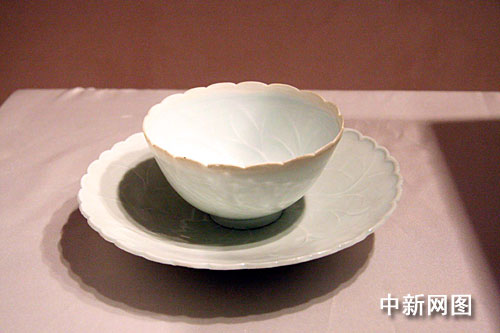 記者還看到,一組青白釉葉脈淺腹盤和青白釉葉脈紋芝碗,均屬于影白瓷器。無(wú)論是碗還是盤,釉色均白中閃爍著青色,青里泛著白光,特別是胎身上的紋葉形狀,幾乎與現(xiàn)代工藝相媲美。“僅僅是普通的日用瓷,就有如此高的制作工藝水平,足以反應(yīng)出南宋時(shí)期,中國(guó)瓷器業(yè)的鼎盛和發(fā)達(dá)!睂<医榻B說(shuō)。