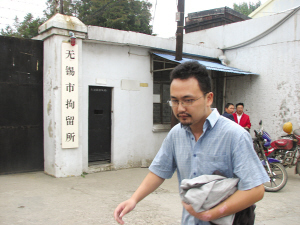 昨日上午8點(diǎn)50分左右,黃海清從無錫拘留所被放出。谷岳飛 攝