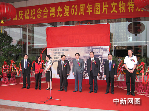 中新網(wǎng)10月25日電 (劉通 福建泉州報(bào)道)今日上午十時(shí)許,“紀(jì)念臺(tái)灣光復(fù)63周年圖片文物特展”在位于福建泉州的中國(guó)閩臺(tái)緣博物館開(kāi)幕。全國(guó)臺(tái)聯(lián)會(huì)長(zhǎng)梁國(guó)揚(yáng)、福建省委宣傳部副部長(zhǎng)朱清等出席了儀式。