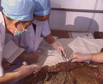 研究人員提取光緒帝衣物樣品。
