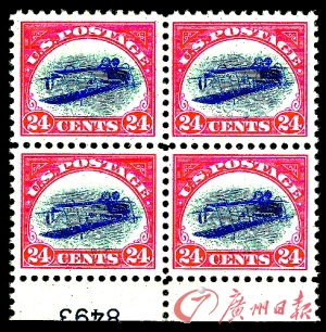 集郵界聞名遐邇的郵票“倒轉(zhuǎn)的珍妮”也在這次拍賣中賣出高價。這枚1918年發(fā)行的航空郵票面值24美分,由于郵票上的飛機(jī)圖案被印倒了,當(dāng)時只印制了100枚,因此十分珍貴。紐約州新羅謝爾的郵票經(jīng)銷商哈里·哈根多夫以38.8萬美元拍得這枚郵票。