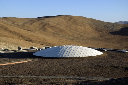 影片的高潮發(fā)生在智利的歐洲南方天文臺(tái),這里邦德和他的對手展開了最后的殊死搏斗。該天文臺(tái)位于阿塔卡馬沙漠中海拔2400米的山峰上,由德國建筑師奧爾和韋伯設(shè)計(jì),條紋狀表面的建筑物埋藏在荒蕪的沙漠下,由玻璃圓頂采光照亮室內(nèi)的花園和游泳池。由于該建筑坐落在非常偏僻的地方,人們很難有機(jī)會(huì)親臨現(xiàn)場,因此這部電影是欣賞這座建筑物的絕好機(jī)會(huì)。有動(dòng)感的混凝土外表面、泥土色調(diào)的內(nèi)表面、深深的內(nèi)部透視空間,還有精致的細(xì)節(jié)……最后,觀眾將從鏡頭里看到它毀滅殆盡。
