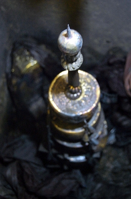 據(jù)了解,目前包裹“塔王”的錦緞已經(jīng)基本打開,專家用蒸餾水添加化學藥品對錦緞進行了去污和消毒,對撒在錦緞上的金粉進行了加固?脊湃藛T從夾縫里取出一些小塊的絲織物。令考古專家驚奇的是,在絲織物上發(fā)現(xiàn)了“墨書”文字,保存十分完好。經(jīng)歷近千年的文字仍然清晰可辨,專家對文字進行研究后發(fā)現(xiàn),文字上大多書寫的是捐獻者的名字?脊湃藛T把絲織物儲存在一個溫度、濕度恒定,沒有紫外線的環(huán)境下保護起來。目前,“塔王”已完全露出上半身的真容,從上往里探視,可以看見塔腰處鑲嵌了許多精美的各色寶石。在清理中,考古人員又從四邊的夾縫中吸出了許多寶物,有各類寶石、玻璃器皿、銅錢等文物,“有的珠子可能是塔身上掉下的,也有的是捐獻者放進去的!币晃唤谠M地庫看過鐵函的相關人士告訴早報記者。