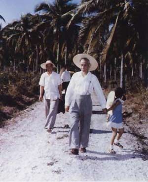 資料圖片:1959年11月,劉少奇同女兒亭亭在海南島椰林