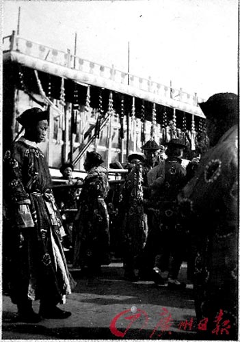 據(jù)介紹,在這些老照片中,有一組450張照片來自一位英國人,這組老照片相簿的封面上印著“BB”兩個字母。照片拍攝于1909年前后,翻開這組老照片,北京、上海、南京、香港等中國大城市的舊貌盡收眼底。其中有21張照片反映的是當時慈禧太后入葬東陵時的情景,尤為珍貴。