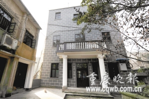 記者昨日看到,公館保護完好。樓房青磚砌墻,爬滿手指粗的藤蔓。大門采用羅馬柱,兩只石墩已經(jīng)風化。屋內(nèi)上朱紅油漆的柏木鋪就地板和樓梯,欄桿上刻飾精細,每層樓梯口和單個房間均設拱形木門。大門前是一方小院,青石板地面長著一株直徑約1米的黃葛樹。