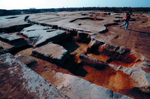 在已經(jīng)出土的制鹽作坊處我們看到,在坑井南北兩側(cè),有兩條水溝分別流向坑池,目前已清理出不同時期的坑池約10個,深約 50厘米。據(jù)分析,此坑分沉淀池和蒸發(fā)池兩種。沉淀池主要作用為凈化鹵水,蒸發(fā)池主要作用為提高鹵水濃度。沉淀池、蒸發(fā)池均為目前國內(nèi)首次發(fā)現(xiàn)。沉淀池、蒸發(fā)池的出現(xiàn),說明在商代人們已經(jīng)了解了渤海南岸地區(qū)春夏之交降水量少、干燥多風(fēng)、蒸發(fā)量大的特點,充分利用日曬、風(fēng)力等自然力來提高鹵水的鹽度,這是后來曬鹽工藝的雛形。