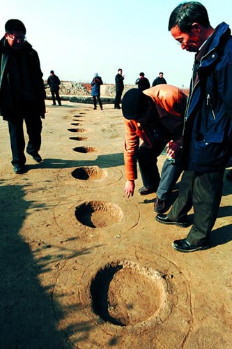 為做好南水北調(diào)工程山東段的文物保護(hù)工作,從2008年4月開始,山東省文物考古研究所、北京大學(xué)考古文博學(xué)院聯(lián)合對雙王城水庫工程范圍內(nèi)的遺址進(jìn)行有計劃的發(fā)掘,發(fā)掘面積近4000平方米,發(fā)現(xiàn)多處比較完整的商周時期與制鹽有關(guān)的重要遺跡。為明確這些遺跡的性質(zhì)及意義,12月11日,山東省文物局邀請中國社會科學(xué)院考古研究所、北京大學(xué)考古文博學(xué)院及山東省文博界部分專家到壽光雙王城鹽業(yè)考古工地進(jìn)行了考察,并召開了論證會。