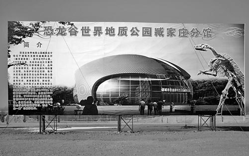 在諸城市龍都街道庫溝村村北,鐵絲網(wǎng)圍成的發(fā)掘工地現(xiàn)場,各種規(guī)劃圖和效果圖豎立在顯眼處。工作人員告訴記者,這里將建成恐龍谷世界地質(zhì)公園,而在三四里地外的臧家莊村村北,將建成恐龍谷世界地質(zhì)公園臧家莊分館!暗綍r候從市區(qū)的恐龍博物館乘船,沿著濰河可直接到達這兩個地質(zhì)公園 ,既可以看到修葺一新的展館,也可以看到保留下來的部分考古發(fā)掘現(xiàn)場。”