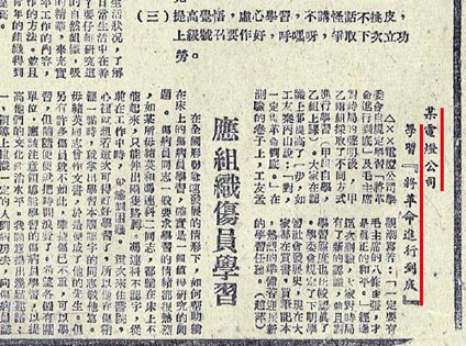 6.1949年2月2日《人民日報》第4版刊登的報道:某電燈公司學習《將革命進行到底》