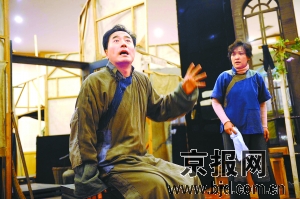 昨天雖然看到的只是該劇第一場(chǎng),但也能從中感受到《龍須溝》的整體風(fēng)格。散文化的敘事方式,使該劇的故事性比較弱,但人物個(gè)性鮮明,它所展現(xiàn)的市井生活具有濃郁的生活氣息。動(dòng)蕩的大環(huán)境下,小人物的悲慘命運(yùn)在家長(zhǎng)里短的敘述中逐一呈現(xiàn),很快就將觀眾帶入規(guī)定情境。雖然只是連排,但看到辛酸處,還是讓不少人都感覺(jué)眼眶一熱。人藝藝委會(huì)成員蘇民、鄭榕、朱旭、藍(lán)天野等老藝術(shù)家也前來(lái)觀看。藍(lán)天野說(shuō),盡管自己50多年前看過(guò)老版《龍須溝》,但這次依然被感動(dòng)得三次落淚。