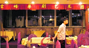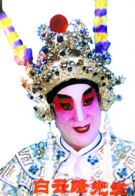 “文革”后,白云峰又操起了唱戲的老行當(dāng)。12年前,白云峰放棄了國(guó)營(yíng)劇院的鐵飯碗,領(lǐng)著一班樂(lè)師和演員,組建了云峰粵劇藝術(shù)團(tuán)。“戲班”的主要舞臺(tái),除了到鄉(xiāng)下慰老臨時(shí)搭臺(tái),便是城里的茶樓飯館。白云峰操辦“戲班”盡心盡力,集劇團(tuán)的老板、師傅、編劇、導(dǎo)演于一身。