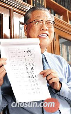 陳泰夏親自訪問(wèn)說(shuō)服金鐘泌和李會(huì)昌時(shí),兩人欣然應(yīng)允了簽名的請(qǐng)求。金鐘泌還很高興地說(shuō):“沒(méi)有漢字,我們?cè)趺茨軌蚶^承傳統(tǒng)呢?”當(dāng)寄出的信件沒(méi)有回音時(shí),陳泰夏會(huì)再次寄信。在第5次寄出信件后,還真有人答應(yīng)簽名了。憑借他的堅(jiān)持不懈的努力,最后20名前總理全都同意簽名。陳泰夏說(shuō):“從簽名的字體來(lái)看,不少前總理的書(shū)法造詣很深,其中金鐘泌的功力尤為深厚!