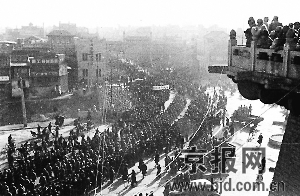 入城式領(lǐng)導(dǎo)為什么先到前門箭樓東邊空地上,是為了勘察受閱部隊的行進路線,因為這支主要由繳獲美式裝甲車、大炮、坦克等裝備組成的威武之師,要從箭樓東側(cè)前行至東交民巷,向帝國主義者示威。人民群眾拍手稱快,受閱部隊與市民水乳交融,口號聲、歌聲震天,直至下午5點,才由廣安門出城。稍事休整,又踏上了南下解放全中國的征程。