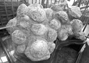馮館長告訴記者,這些陸龜化石距今6500萬年,它們每只都有大海碗那么大,團(tuán)在一起姿態(tài)各異,或俯或仰,背上龜殼紋路清晰可辨。這種不正常的保存狀態(tài)顯然是一種非正常狀態(tài)下的埋藏情況。