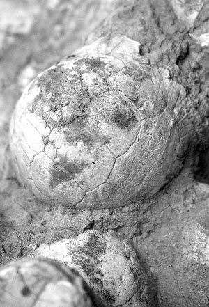 恐龍蛋化石并不少見,但你見過24只恐龍蛋組成的“窩蛋”嗎?記者在博物館看到一億年前(白堊紀(jì))的恐龍蛋化石。24個蛋化石“排排坐”,看起來十分可愛。馮偉民說,這次展出的恐龍蛋外殼保存得比較好,表面結(jié)構(gòu)紋路都被保留下來,一窩的數(shù)量也很多!翱铸埉a(chǎn)蛋跟烏龜有點像!睂<艺f,烏龜?shù)搅朔敝臣竟?jié),往往成群地找個沙灘筑窩產(chǎn)蛋。產(chǎn)完蛋后,扒一些沙子把蛋埋起來,借助太陽光提供的熱量自然孵化……不過,至于雌性恐龍產(chǎn)蛋后像不像母雞那樣坐窩孵蛋,目前還沒有定論。