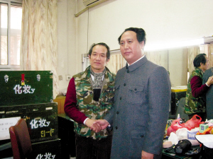 1月21日清晨,石家莊市總工會(huì)宣教部部長趙新月起了個(gè)大早,穿上了一身嶄新的銀灰色中山裝,搭早車趕往北京。10點(diǎn)半,他準(zhǔn)時(shí)出現(xiàn)在八一電影制片廠化裝室,多次為影視劇中毛澤東的扮演者古月化裝的著名化裝師楊碩玲,將為趙新月第二天在北京的一場演出進(jìn)行設(shè)計(jì)造型。