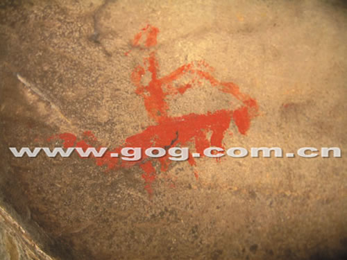 據(jù)介紹,去年12月16日,貴州省考古所所長助理李飛、研究員楊洪在普定縣考古所所長陳發(fā)武帶領(lǐng)下,到化處鎮(zhèn)考古時,無意中在該鎮(zhèn)中學(xué)對面的空山腳下巖石上發(fā)現(xiàn)一些紅色印跡,經(jīng)仔細辨認后,這些紅色印跡被確認為巖畫。隨后,幾位考古專家又繼續(xù)往半山坡上尋找,共發(fā)現(xiàn)了10余幅巖畫。這些古巖畫中,許多畫清晰可辨,有栩栩如生的小狗,有耀武揚威騎馬的將軍等等。