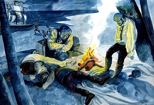 在大海盜愛德華 洛威爾的海盜旗上,鮮紅的人體骨架代替了白色的骷髏,似乎在昭示著,這位海盜的殘忍是罕有匹敵的。洛威爾曾截獲了一條從巴西返航的葡萄牙商船,葡萄牙船長將一萬多枚金幣裝在麻袋里,用繩索扎緊掛在舷窗外,期望能躲過這一劫。但這點小小的詭計沒能逃過海盜們銳利的眼睛,就在欣喜的海盜們將手伸向繩索的那一瞬,船長突然從腰間拔出匕首割斷了繩子,金幣落入了大海。氣急敗壞的洛威爾將這位船長的嘴唇割了下來,當(dāng)著所有俘虜?shù)拿嬖谟蜔羯峡窘沽耍缓蠛啡幻钍窒聦?2名葡萄牙船員全部殺死。1724年,洛威爾的海盜船被英國海軍捕獲,惡貫滿盈的洛威爾在海戰(zhàn)中被打死,在審訊被俘的海盜時,人們獲知了這段聳人聽聞的慘劇,于是,英國海軍法庭對洛威爾手下的十四名骨干處以絞刑。