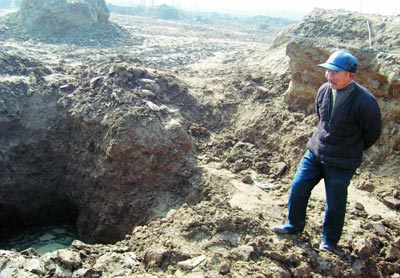 此時,這兩處地方已經(jīng)沒有村民挖掘了,但還殘留著村民們挖銀元時留下的許多土坑,大大小小的坑一個連著一個,有的坑甚至有三四米深,與周圍平整的土地形成了鮮明對比!白蛱烊齻小伙子還在挖,挖出來三只黃色的破碗,銀元已經(jīng)被找完了!”褚大爺說,1月18日前后發(fā)現(xiàn)了第一個出銀元的地方,年后又發(fā)現(xiàn)了第二個地方。