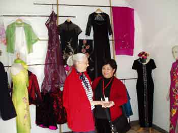 還有那窄窄小小、婉約動(dòng)人的旗袍,無論是絲的、綢的、緞的、布的,還是金黃、翠綠、藕粉、寶藍(lán)的,它們或鮮艷或素雅,或凈花碎圖或鑲嵌提繡,絲質(zhì)潤(rùn)白猶如羊脂溫玉,立領(lǐng)長(zhǎng)盤扣琵琶襟絹花袖,都流傳出中國水墨式的飛白寫意。