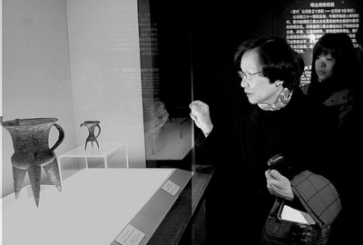 昨日,臺北客人來到上博,立即同上博方面進行了極其融洽的商談,由于相談甚歡,遲遲不能結(jié)束,原定的參觀時間不夠用了,所以上博方面只好請臺北客人進入地下的貴賓廳,從庫房里精選出館藏珍品進行展示。由于來訪的大多是臺灣的文物專家,因此客人們看得十分仔細(xì),甚至帶著學(xué)者的眼光來探究!爸芄闻烤褪瞧崞鞣矫娴膶<遥覀円舱故玖似崞,周院長看得十分仔細(xì)。 ”上博接待人員透露,展示給臺北客人看的包括青銅器、瓷器、書畫等,共10多件重要藏品。