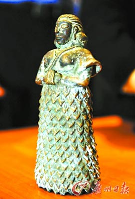 經(jīng)埃及文物部門的考證和鑒定,銅像創(chuàng)作于兩河流域文明時期,描繪的是一名正在祈禱的婦女(見右圖)。