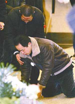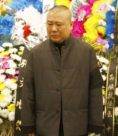 上午7點44分,德云社內(nèi)部的吊唁活動率先進(jìn)行。郭德綱、王惠夫婦,于謙、王海、李菁、何云偉、曹云金等骨干演員率百名演職人員向張文順先生的遺體默哀,禮畢后人人號啕大哭,痛不欲生。雙眼紅腫、哽咽不斷的郭德綱嘆息說,張先生走得太早了,自己失去了一位摯友,他愿老人能夠在天享福,歡笑來生。郭德綱承諾會照顧張夫人,并用心培養(yǎng)張文順的外孫寧云祥在德云社說好相聲。