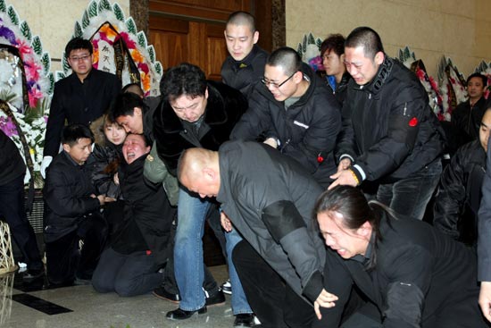上午8點,千余綱絲手捧白菊花、高舉張文順的紀(jì)念畫冊前來吊唁,長長的隊伍排出了百米開外。公眾追悼儀式開始,曲藝同仁李金斗、劉洪沂、謝天順、梁厚民第一列入場。張夫人激動地握住李金斗的手放聲大哭,李金斗連連安慰,說有困難他一定會幫忙。走出大廳,李金斗說:“張文順是我同班學(xué)長,大師哥為人豪爽,非常聰明。感謝德云社能照顧他走完一生,沒有德云社就沒有張文順的名望!