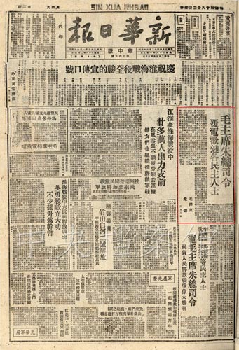 3.1949年2月5日,《新華日?qǐng)?bào)》發(fā)表的毛主席朱總司令歡迎各民主人士的復(fù)電